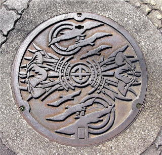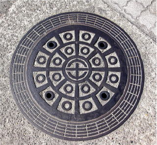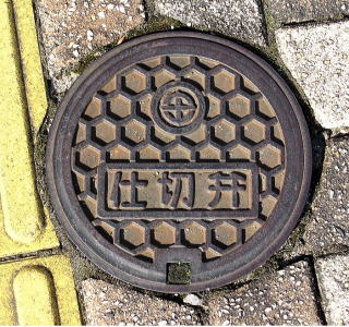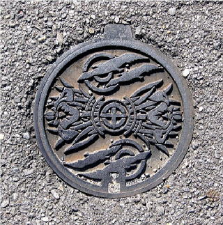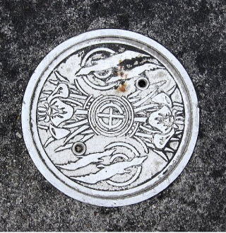 文字を配した水道の仕切弁の蓋