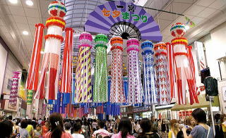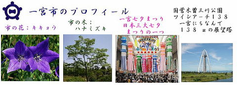その 1 かつては織物で知られた町で 七夕まつりも 「おりもの感謝祭」「一宮七夕まつり」と 呼ばれている 伝統的な「吹流し飾り」の他に「小中学校創作 七夕飾り」等も飾られ 日本三大七夕まつりの 一つに数えられている |