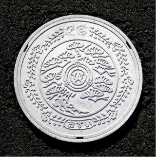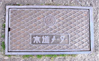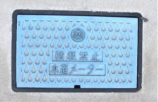 上に市章を下に識別文字を配した水道の