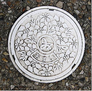 市章を貼り付けた 道路の側溝蓋