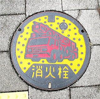 上に小さく市章を配した消火栓の蓋