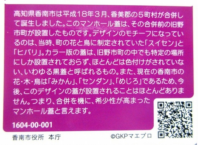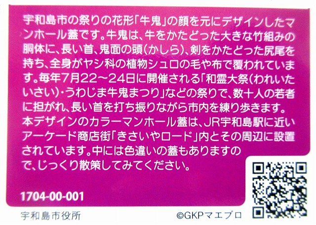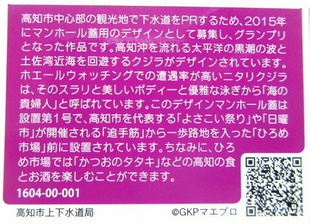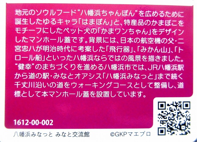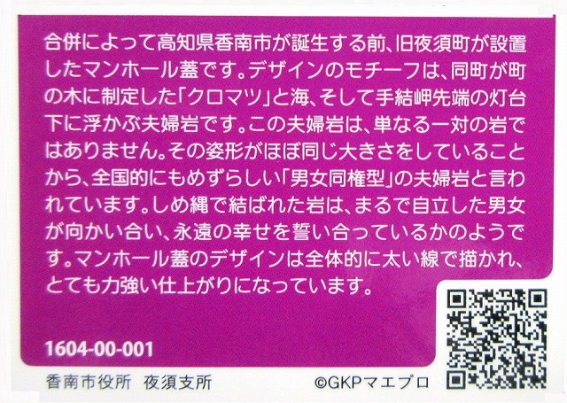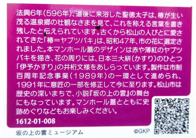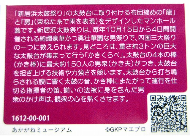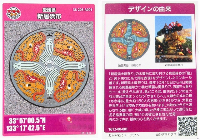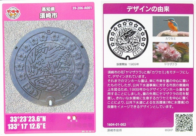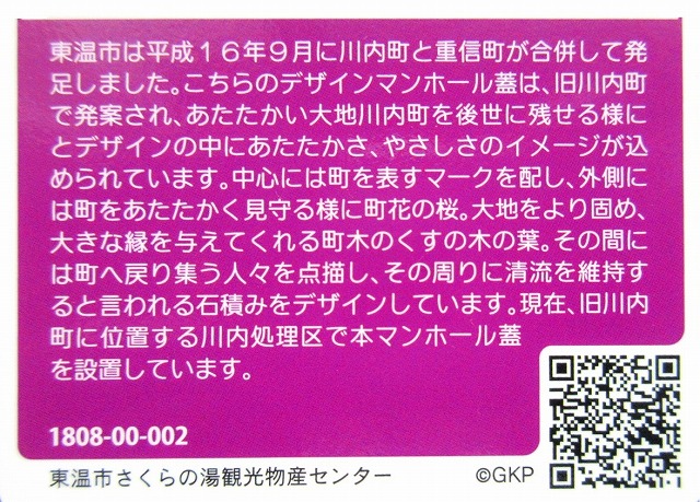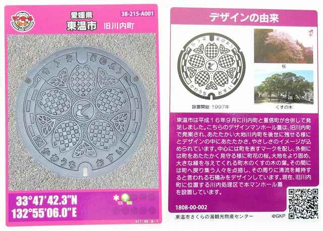 マンホールカードは 表にマンホールの蓋全面と設置市町村名と設置位置 裏にデザインの由来写真と説明書きです カードの表裏と由来説明を それぞれ1枚にまとめました 下の写真をクリックしますと写真が拡大します