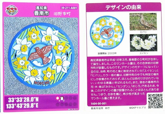 受領した愛媛県と高知県のマンホールカードカードを アップしました