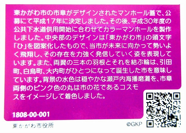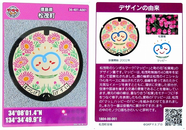 マンホールカードは 表にマンホールの蓋全面と設置市町村名と設置位置 裏にデザインの由来写真と説明書きです カードの表裏と由来説明を それぞれ1枚にまとめました 下の写真をクリックしますと写真が拡大します