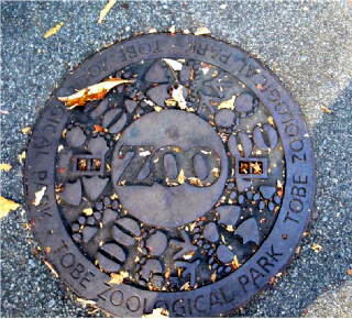 その 1 中心に「ZOO」 を周りに動物たちの足跡 を更にその周りに「ZOOLOGICAL PARK TOBE」 と書いたデザイン 撮影日; 2007年11月7日 撮影場所; 松山市 とべ動物園内