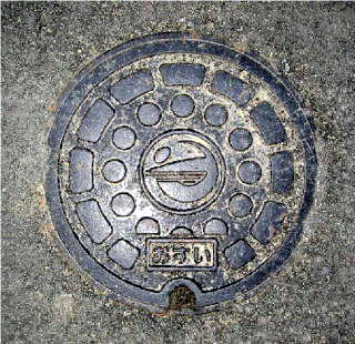 その 1 イボ状の滑り止めの背景模様の中心に 町章を配したデザイン 撮影日; 2007年1月24日 撮影場所; 伊方町役場付近