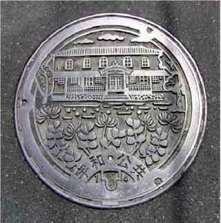 その 4 マンホールのデザインになっている。四国 最古の小学校、1882年(明治15年) に 現存の校舎が竣工した。 撮影日; 2009年5月10日 撮影場所; 日本の重要伝統的建造物群 保存地区に指定されている「宇和 文化の里」 宇和町卯之町
