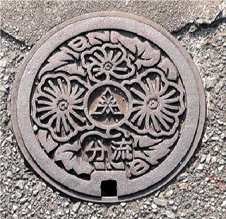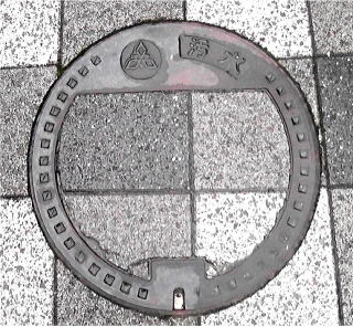市章を中心に配した 波模様の孔が開