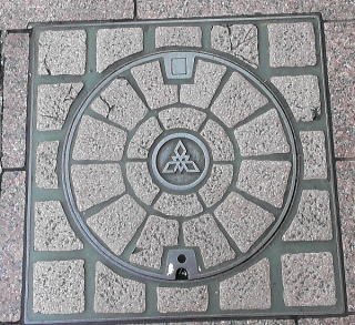 カラー歩道のコンクリート製の蓋の中心に