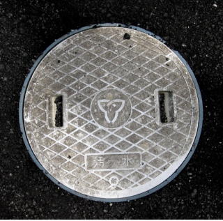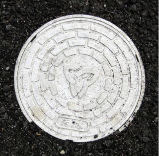 その 7 その 6 と同じデザイン 長方形の同心円が (3周)と蓋が小さい 一般家庭と本管を繋ぐ樹脂製のマンホール蓋 撮影日; 2013年4月4日 撮影場所; JR山陽線 相生駅南口 駅前通りの民家 |