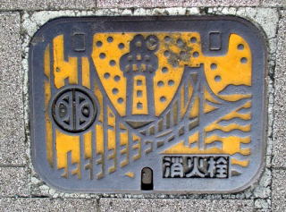 その 12 その 11 と同じデザイン 長方形の 縦型の消火栓の蓋 撮影日; 2015年7月28日 撮影場所; JR明石駅北口付近 |