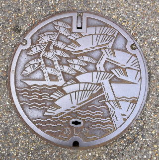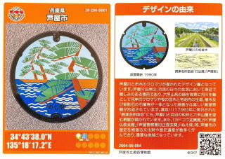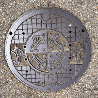 その 7 市の花:コバノミツバツツジを描いた 雨水専用の蓋 撮影場所; 阪神電車 「芦屋駅」付近 撮影日:2023年4月2日 |
