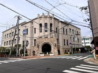 その 2 芦屋警察署旧庁舎玄関口 1927年 (昭和2年)竣工の石造庁舎が新館改築 により保存されている 撮影場所; 芦屋警察署旧庁舎前 撮影日:2023年4月2日 |