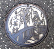 柳と太鼓橋そして湯桶を