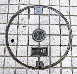 に市章を配した防火水槽の蓋