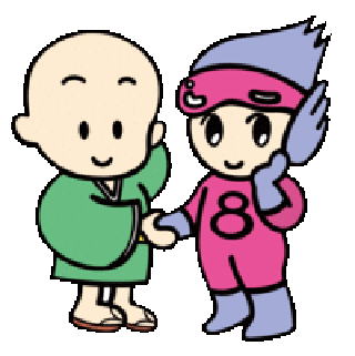その 3 マンホールのデザインになっている 町のキャラクター 「円心くん」 と 「エイトちゃん」 |