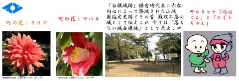 その 1 中心に町のキャラクター 「円心くん」 と 「エイト ちゃん」 を上に 町のキャッチフレーズ 「れきし とみらいのまち」 を描いたデザイン 円心くんは町ゆかりの歴史上の人物「赤松円 心」 をエイトちゃんは「播磨科学公園都市」 に ある大型放射光「SPring8」からイメージされる 未来の女の子表しているそうです 撮影日; 2013年4月4日 撮影場所; JR姫新線 上郡駅前通り |