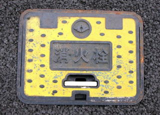 その 6 上に町章を配した消火栓蓋 撮影日; 2013年4月4日 撮影場所; JR姫新線 上郡駅前通り |