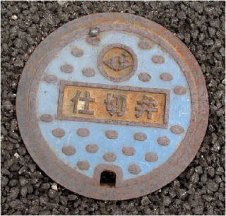 その 8 上に町章を配した水道の仕切弁 撮影日; 2013年4月4日 撮影場所; JR姫新線 上郡駅前通り |