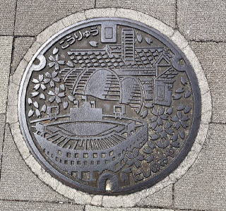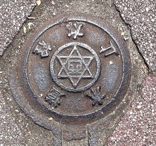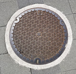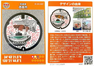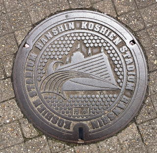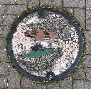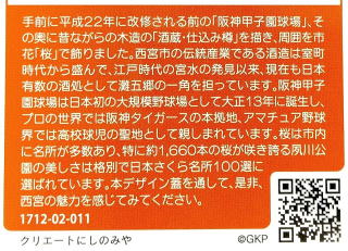 その 3 「甲子園球場」と「酒蔵」 市の花;サクラ の花をデザイン 神戸市灘区から西宮市にかけて酒蔵が点在 撮影場所;阪神電車「甲子園駅」駅前球場 近く 撮影日:2023年4月2日 |