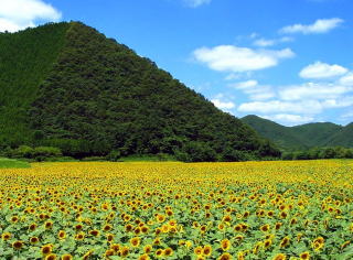 その 1 旧南光町は 「ヒマワリの郷」 知られており 本州の最大級のヒマワリ畑を誇っている 毎年 「南光ひまわり祭り」 が開催されており 町内では7ヶ所でヒマワリが栽培されている が 夏のヒマワリは満開の時期が1週間と 短いため 1ヶ月間どこかで開花が楽しめる ように種まき時期を調整している様です |
