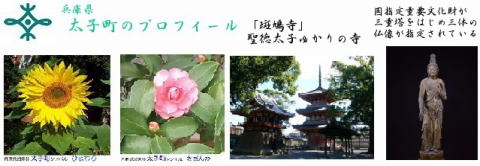 その 1 聖徳太子のゆかりの地で 町名もそれに あやかって付けられた 町の花; ヒマワリ の花をリズミカルに描 いた背景模様の中心に 町章を下に管理 者名 「たいし」 を配したデザイン 撮影日; 2013年4月4日 撮影場所; JR網干駅北口 県道27号沿い |