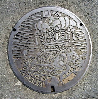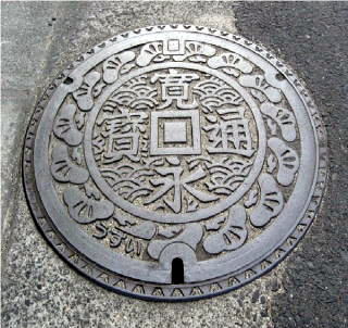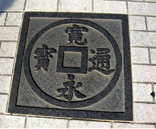 有明浜の白砂に描かれた 「寛永通宝」 は