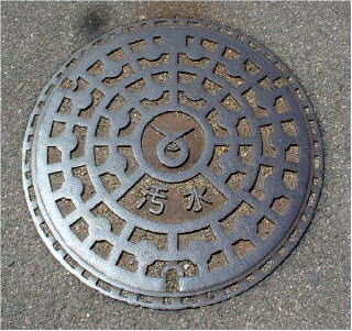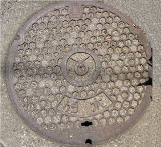 一般家庭と本管を繋ぐ鉄製のマンホー