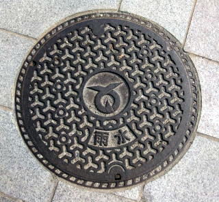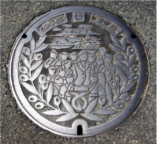 その 2 Y 型の背景模様の中心に町章と 識別文字 「雨水」 を配したデザイン 撮影日; 2009年6月17日 撮影場所; 土庄町 渕崎交差点