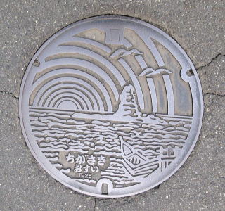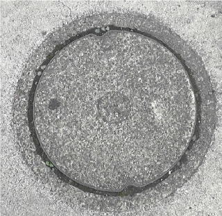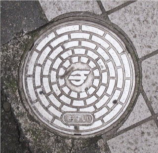 コンクリート製の蓋の中心に市章を配