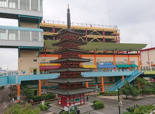 その 1 マンホールのデザインにもなっている 「相模国分寺」の七重の塔 海老名駅東口正面の「海老名中央 公園」にある復元模型(1/3模型) 撮影日; 2008年5月18日