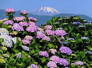 その 1 神奈川県で 最も小さい面積の自治体 また東日本の「町(マチ)」の中でも最も 面積が小さい 町の花;アジサイ 越しに見る富士山 開成町「あじさいの里」より