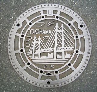 蓋全体に「横浜ベイブリッジ」を描いたデザ