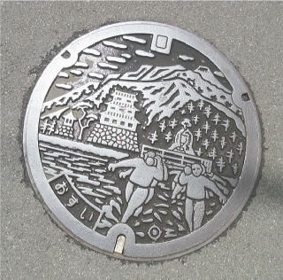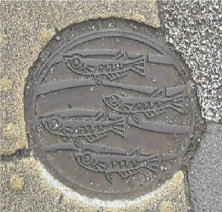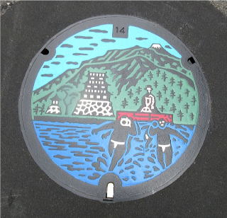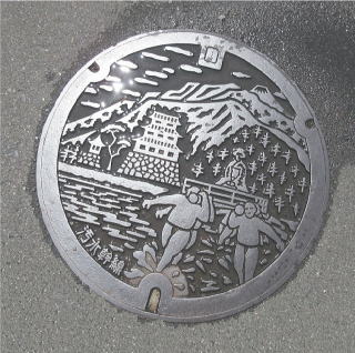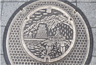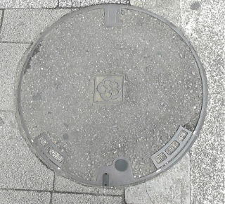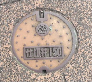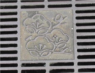 市の花;ウメ の花を描いた側溝蓋