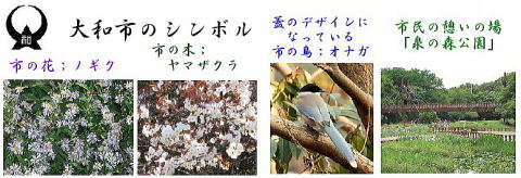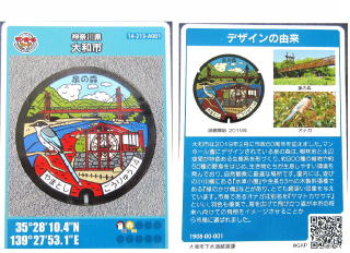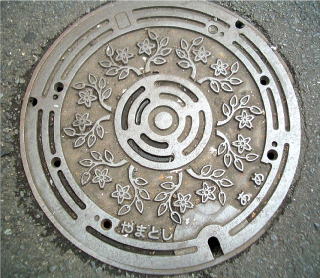 その 4 蓋全体に 市の木;ヤマザクラ と思しき 木の枝と花を描いたデザイン 撮影日; 2008年5月18日 撮影場所; 小田急江ノ島線「大和駅」 駅前付近 提供者;甥のH・Y さん
