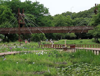 その 5 マンホールの蓋のデザインにもなって いる市の憩いの場所「泉の森」 ここに架かっている橋は日本最初の斜 張橋だそうです