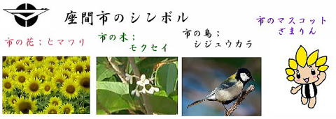 その 4 升目の所々に○の入った背景模様の中心に 市章を下に識別文字を配したデザイン 撮影日; 2019年8月18日 撮影場所; 小田急小田原線「座間駅」 駅前付近 提供者;甥のH・Y さん