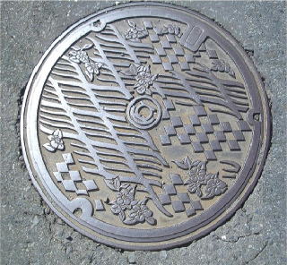 その 2 市の都市宣言「青い海とみどり豊かな 平和都市」から青い海とみどりをテーマ にデザインしたもので 海を表す波模様 と市の木;ツバキ それに都市(街区)を イメージするひし形を加えて中心に市章 を配したデザインだそうです 撮影日; 2008年3月1日 撮影場所;JR横須賀線「逗子駅」駅前 提供者;甥のH・Y さん