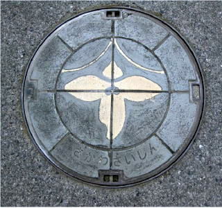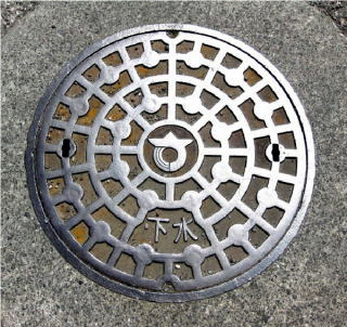 その 3 植物学者 「牧野 富太郎」 によって発見 命名された 「サカワサイシン」 が 町の花 に選定されており マンホールのデザインにもなっている 撮影日; 2009年4月12日 撮影場所; 佐川町 甲 酒蔵の道