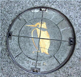 その 1 鎖のリング状の背景模様の中心に町章 と識別文字 「下水」 を配したデザイン 撮影日; 2009年4月12日 撮影場所; 佐川町 甲 佐川地場産センター付近
