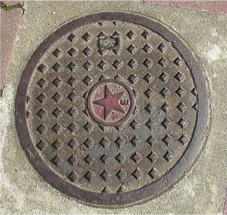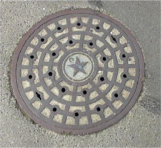 の中心に市章と識別文字「公共桝」を配