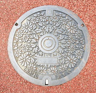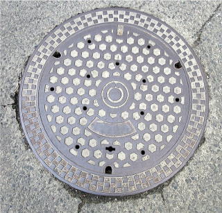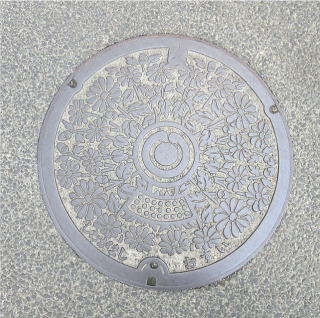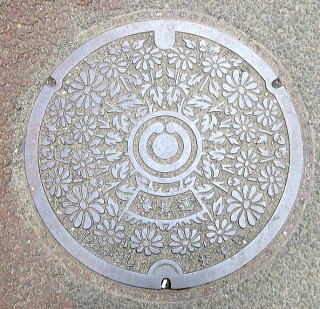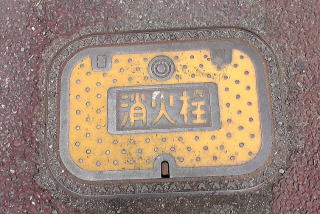 識別文字を上に市章を配した消火栓の蓋
