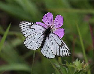 その 3 高山植物の花 「フウロウ」の蜜を吸う「ミヤマ シロチョウ」