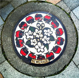 中心に市の花;リンゴ の花を回りに
