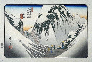 その 2 中山道の「和田峠」の厳しい峠道を 歌川広重が描いた「木曽海道 和田」 のデザイン 撮影日;2017年6月5日 撮影場所;道の駅 「マルメロの駅」 付近
