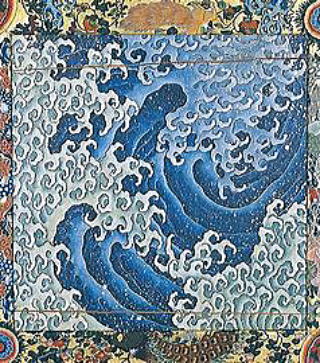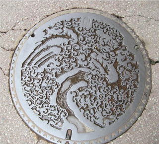 その 1 江戸後期の浮世絵師「葛飾北斎」が晩年 この地で滞在中に残した肉筆画の一つ 「波」 これがマンホールのデザインに なった