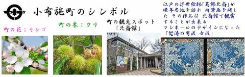 その 2 「葛飾北斎」が滞在した時 岩松院等の 天井絵を残した怒涛図の「男波」をモチ ーフにしたデザイン 撮影日; 2008年6月9日 撮影場所; 長野電鉄 小布施駅前付近 提供者; 甥のY・H さん