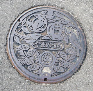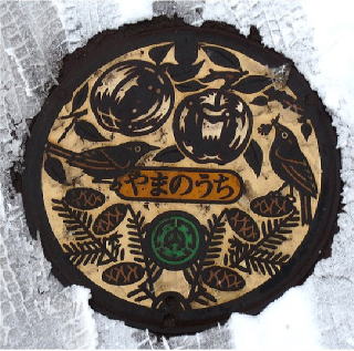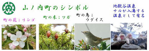 両脇に町の鳥; ウグイス 下に町の木;ツガ