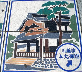 「川越城」の「本丸御殿」の方向を記した