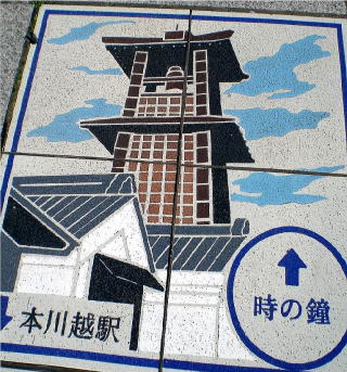 「本川越駅」と観光シンボル「時の鐘」の